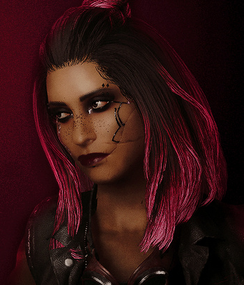 vae feels like she's always hit or miss with judy. she understands her longing for freedom from night city, but they have a tendency to clash a bit. vae thinks of her as a friend, and genuinely hopes judy feels the same. part of vae is afraid she doesn't.