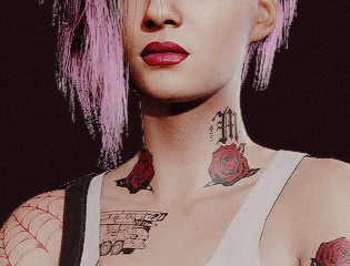 as far as she cares, v doesn't have parents.she was raised by the bakkers. they are her family. or, they were for a very long time. teaching her how to take care of herself and the family, how to rely on people. she never thought she'd be alone with the family by her side.until the bakkers sold out to snake nation. she couldn't rightfully stay with them after that. tearfully, she would end up leaving the clan to preserve her morals, saying goodbye to the family that'd taken care of her all her life.thankfully, through a botched smuggling operation, v would end up befriending jackie welles. from there, she'd quickly ended up with a newfound family in the form of him, mama welles, viktor vektor, and misty olszewski. with the addition of t-bug, vae and jackie would end up as a seemingly unstoppable trio.until they weren't.t-bug was dead. jackie was dead. v died, too, only to be forcibly revived by the relic and given a fancy brain tumor.it's a lot. it's too much, in her opinion. but what more can she do but keep going?